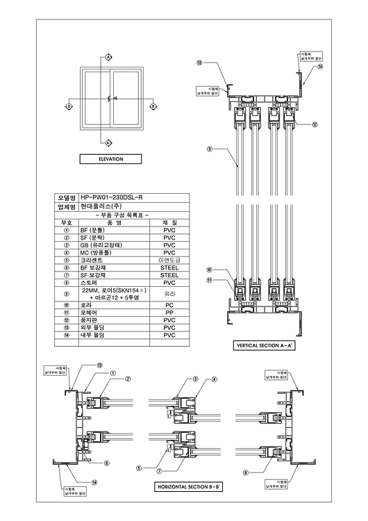 HP-PW01-230DSL-R, 합성수지제창, 230mm > 도면 및 규격서
