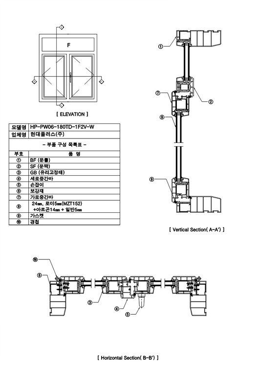 HP-PW06-180TD-1F2V-W 합성수지제창, 180mm > 도면 및 규격서