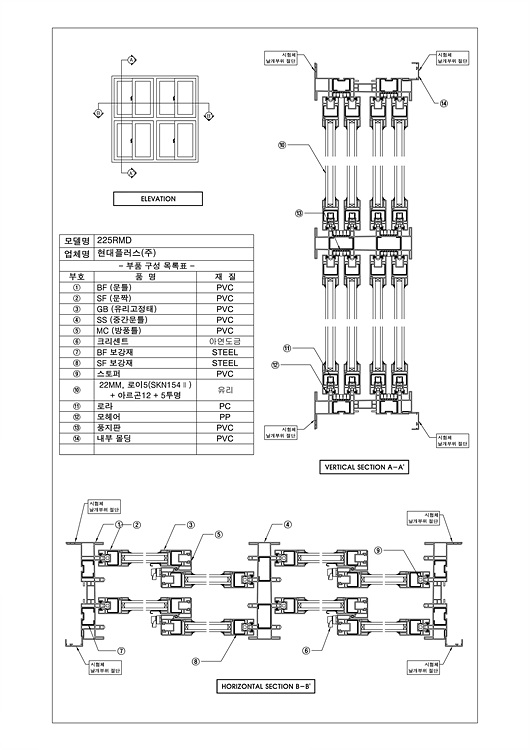 225RMD 합성수지제창, 225mm > 도면 및 규격서