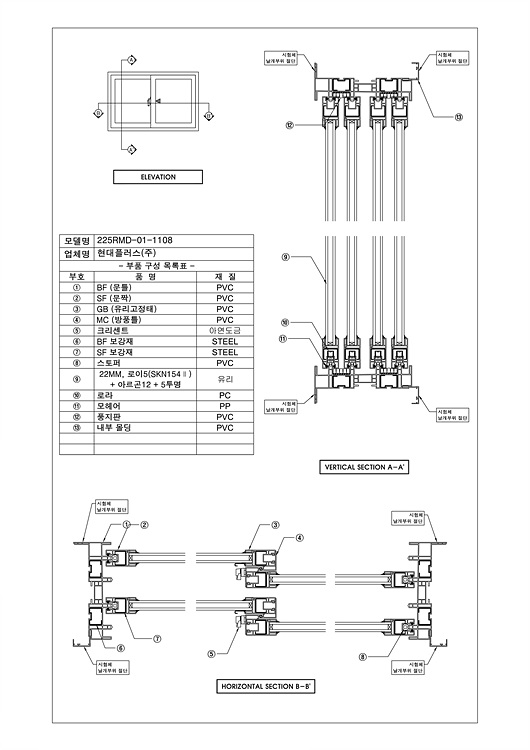 225RMD-01-1108 합성수지제창, 225mm > 도면 및 규격서