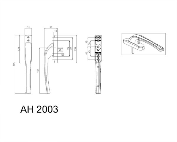AH2003 도어핸들, 240mm > 도면 및 규격서